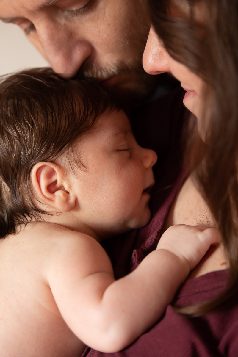 Gael tenía un mes y medio cuando Camino vino a nuestra casa. En sus manos, llevaba una cámara fotográfica, y en sus ojos, esa particular mirada de quien conoce muy bien lo que está delante suyo; tal vez porque también ella es mamá o porque ha visto infinidad de bebés en sus primeros días… pero sentí que nadie más sería capaz de inmortalizar esa historia de amor que acababa de empezar: la de nuestro recién estrenado equipo de tres.